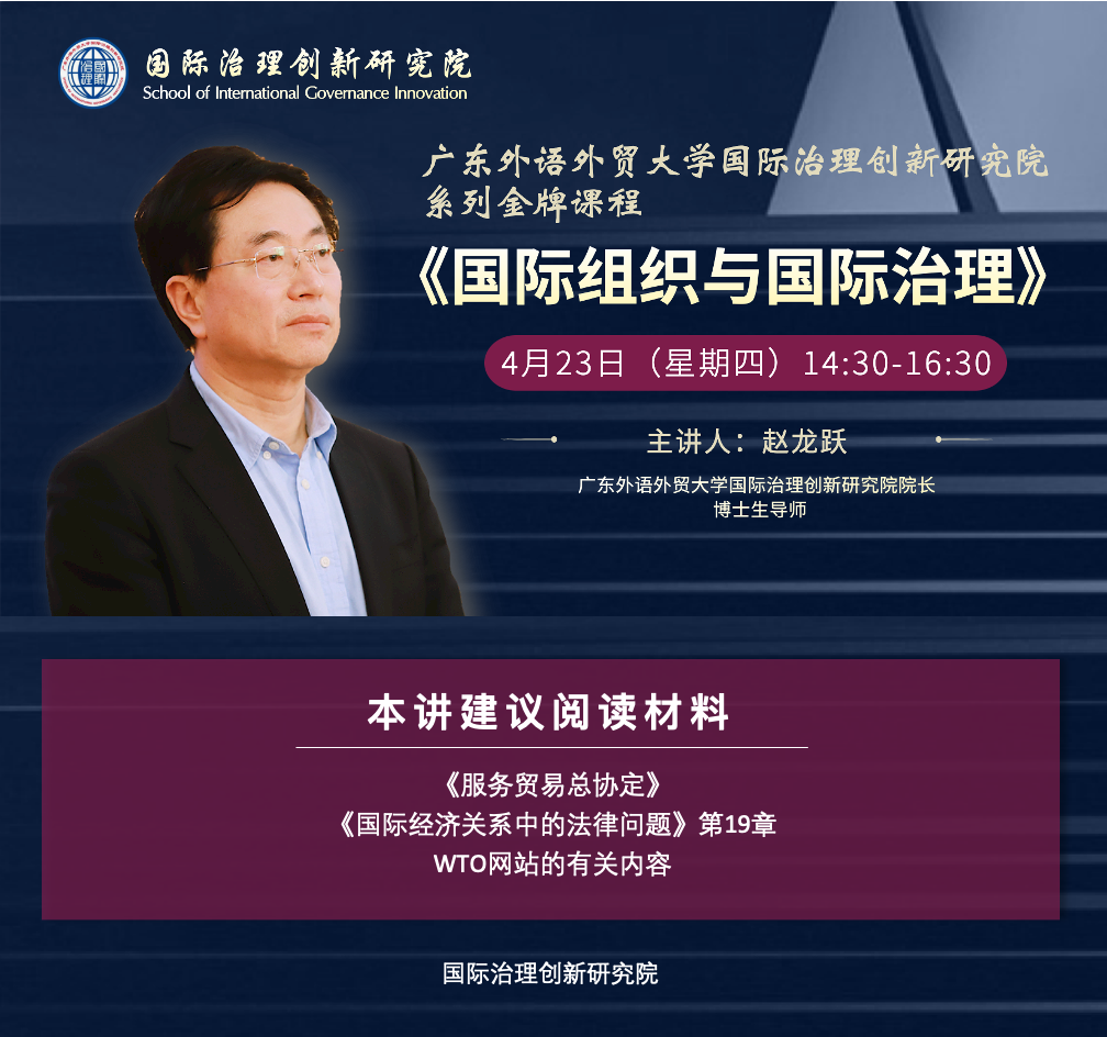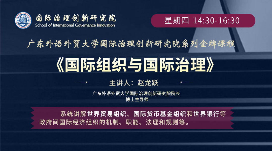 《国际组织与国际治理》是广东外语外贸大学国际治理创新研究院精心打造的系列金牌课程之一,系统讲解世界贸易组织、国际货币基金组织和世界银行等政府间国际经济组织的结构、职能、法律法规等,一方面深化对国际组织与国际治理理论和实践的研究,另一方面进一步增进我国与国际组织的合作和交流。