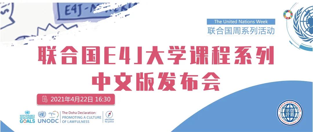 广东外语外贸大学国际治理创新研究院与联合国毒品和犯罪问题办公室(UNODC)以及广东外语外贸大学经贸学院、法学院联合举办的“联合国周”系列活动(二)E4J大学课程系列中文版发布会将于北京时间2021年4月22日16:30(欧洲中部时间10:30)正式开始。