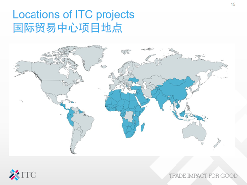 在贸易中,起关键作用的主体有贸易投资支持机构、中小型企业(SMEs)与决策者。ITC通过了解这些主体的贸易需求,一方面支持决策者、贸易投资支持机构营造更加有利的商业环境,另一方面争取为中小型企业提供更多服务。ITC通过直接与中小型企业合作,改善其业务运作,加强其市场联系,使其能够吸收投资和进行国际贸易。ITC的贸易情报工作服务于全球受众,作为全球公共产品,其影响国际贸易相关研究、分析和宣传。