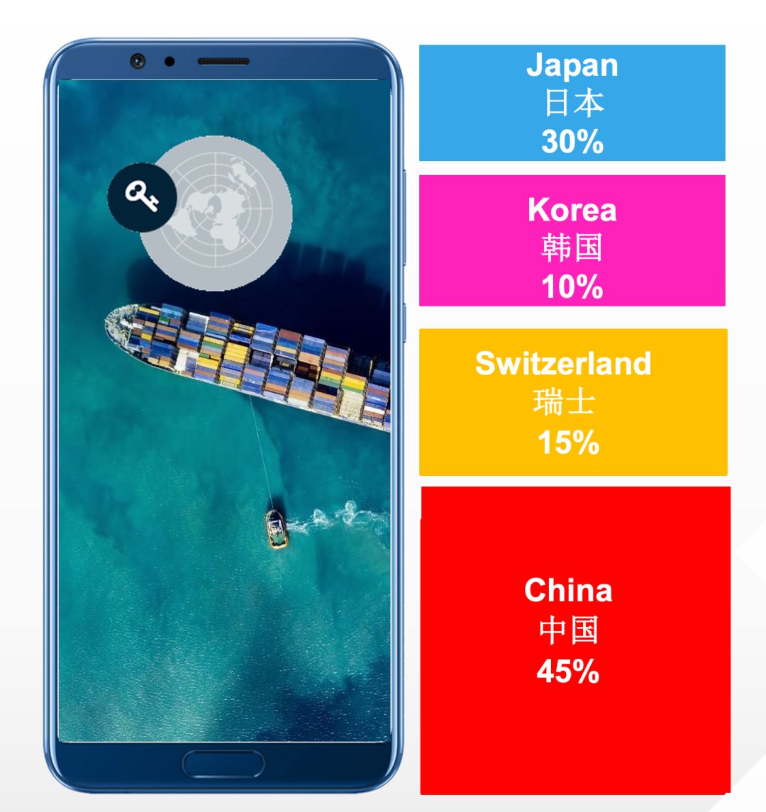 用户可在市场准入地图中找到原产地规则具体条款,其中一项重要条款是累积规则,中国与智利签订的贸易协定允许双边累积,即智利和中国视为一个整体。在这种情况下,中国和智利这个整体在生产手机所贡献的产品价值占比为55%,满足原产地规则中的区域价值成分不低于40%的标准。