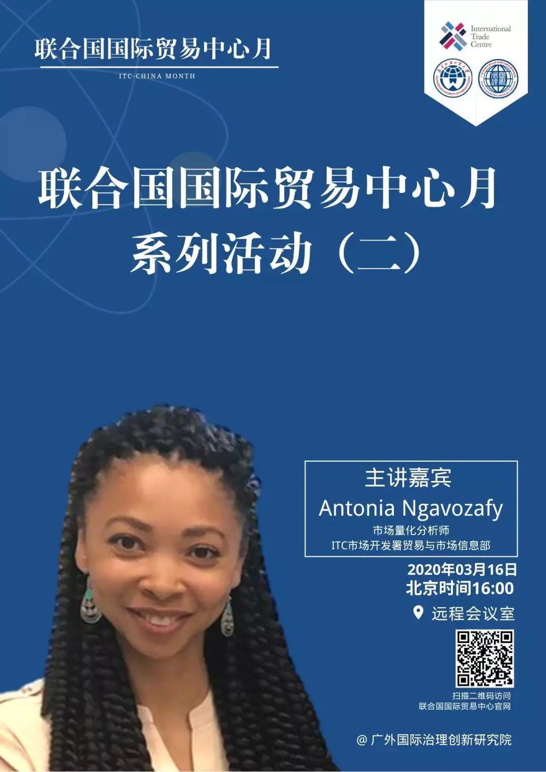 北京时间2020年3月16日,联合国国际贸易中心(ITC)与国际治理创新研究院联合举办的“联合国国际贸易中心月”系列活动之专题二讲座第三讲顺利举行。