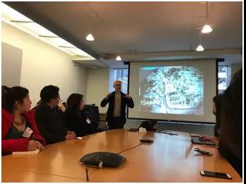 顺利抵达世行后,工作人员首先带领创新班学员来到位于世界银行集团大楼7层的会议室参加由Herbert Francisco先生主讲的介绍会。此次介绍会对象除了来自国际治理创新班的同学以外,还有来自墨西哥国立大学和巴拿马的交换学生。与国际治理创新班学员的情况相似,他们的学生也来自不同学科背景,有志在国际治理方面发展。主讲人Francisco先生来自墨西哥,目前已经在世行工作多年。他首先请三组参观团进行自我介绍,韩雪莹同学作为我方代表介绍了创新班的基本情况。