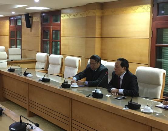2019年1月10日下午,调研组一行专程赴越中友好协会调研,双方就如何共同推进中越跨境经济合作区的建设进行了广泛讨论。此行原越南外交部副部长、原越南驻华大使、越中友好协会现任常务副主席阮文诗,原越南驻华参赞、越中友好协会常务理事曹玉章接待了调研组。