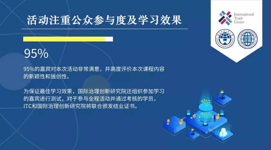 ITC月顺利结束,系列讲座活动成绩显著,影响深远。国际治理创新研究院将组织同学们详细回顾ITC月所做的有关工作,认真总结所取得的成果,以及对下一步与ITC合作工作的思考与建议,形成一个全面的《联合国国际贸易中心月工作总结报告》,中英文双语版本,分别提供给我国有关部门和联合国国际贸易中心参阅指导。