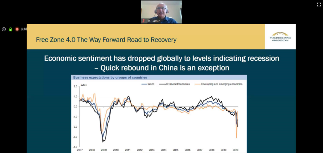 世界自由区组织首席知识官莫汉・古鲁斯瓦米博士立足于当前形势,简要介绍了去年对2020年做出的经济预测,以及因新冠疫情造成的经济冲击。