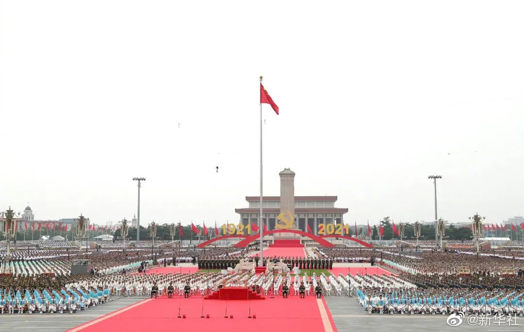 中国共产党100周年庆典活动在北京天安门广场成功举行,中国将坚定不移走中国特色社会主义道路,勇夺中国特色社会主义新胜利,不忘初心,牢记使命。