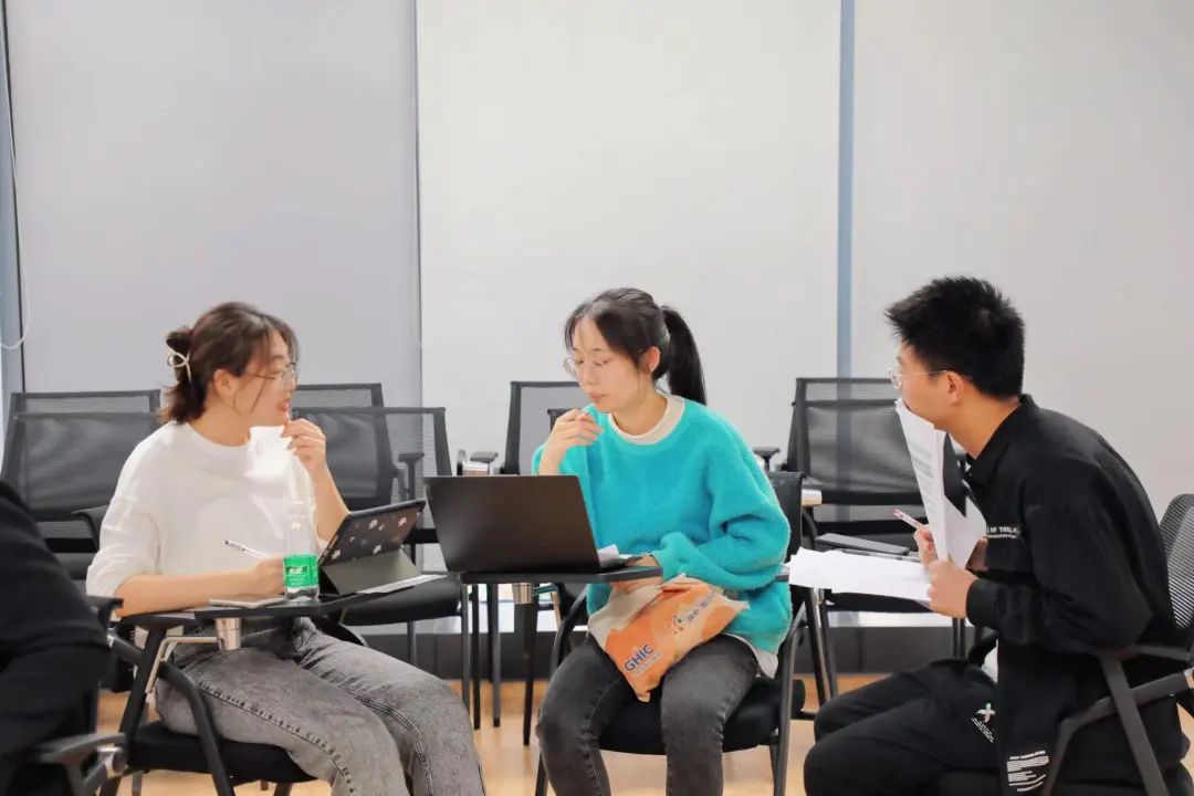 讲座结束后,国际谈判模拟练习环节开始,这也是本次学习活动中互动性最强的一个环节。同学们被随机分成若干个三人或四人小组,分别作为三个国家代表,根据事先准备的某项议题进行谈判。Larry Crump教授运用理论与实际相结合的教学模式,让学生在亲身参与中体验国际谈判氛围、运用国际谈判知识、领会国际谈判策略,充满趣味性的角色扮演模式也有助于提高学生的参与度,提升学习效率。模拟谈判过程中,现场气氛热烈,学生们为了自己所代表的国家利益,积极思考,各抒己见,甚至激烈争论,收获了独特的学习体验。