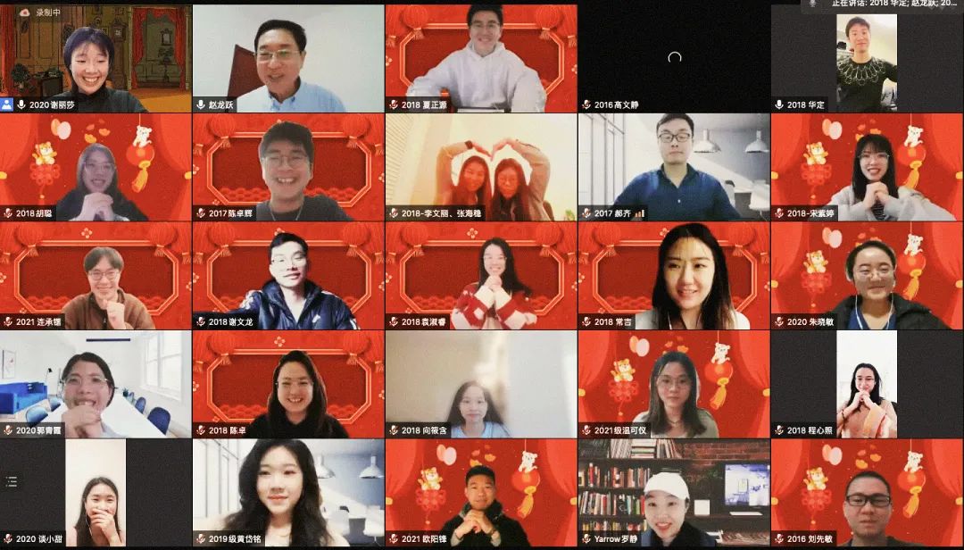 2022年1月28日晚上8:30-12:00,国际治理创新研究院成功举办线上新春联欢会,80多位来自2016-2021级的六届学生代表欢聚一堂,辞旧迎新!在这些学生代表中,有的正在美国英国学习深造、有的已经在国际组织或国内有关机构开始工作、有的正在祖国各地美好的家园欢度寒假迎接新年。赵龙跃教授主持联欢会,首先与参加联欢会的同学们共同祝福我们伟大祖国欣欣向荣、一日千里、国泰民安、繁荣昌盛!祝福我们的老师同学们假期快乐,阖家幸福,虎年吉祥,万事如意!