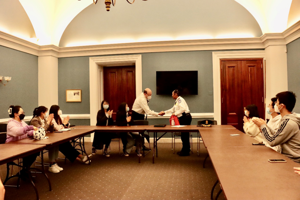 此次学习参观由马里兰大学公共政策学院迈克尔·古德哈特(Michael Goodhart)老师陪同前往,特邀请美国国会警察局代理局长尤加南达·皮特曼(Yogananda Pittman)女士以及达雷尔·斯塔顿上尉(Capt. Darrell Staton)作为向导,为同学们介绍国会功能与结构、国会警察局职责以及公共部门领导力。