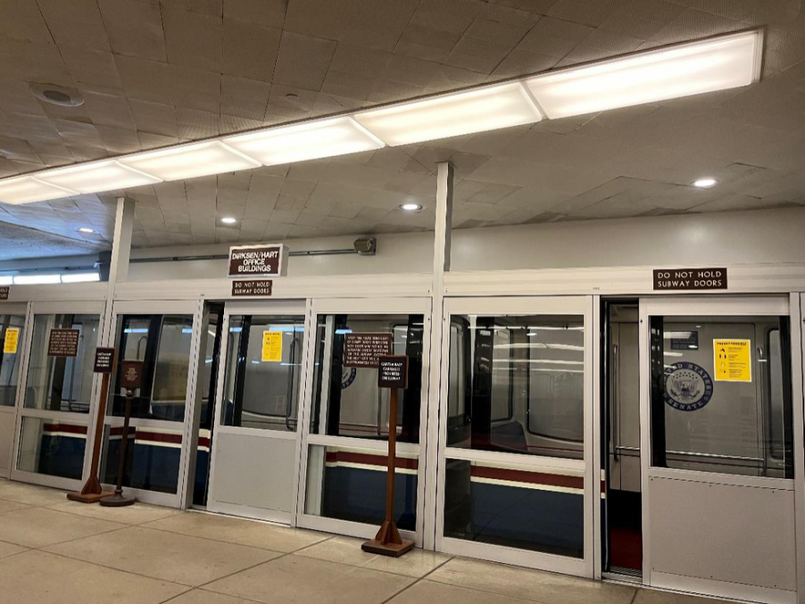 离开国会大厦前,斯塔顿上尉带领同学们来到国会地下,见到了美国国会地铁。地铁连接美国国会大厦和美国众议院,美国参议院,仅限议员、议会相关人员与职员使用。这条地铁是一个免费的电气化轻轨系统,满足了各议员通勤的需要。同学们对此感到十分新奇,一路上跟随着斯塔顿上尉的脚步,有说有笑地走过了整条地铁线路。