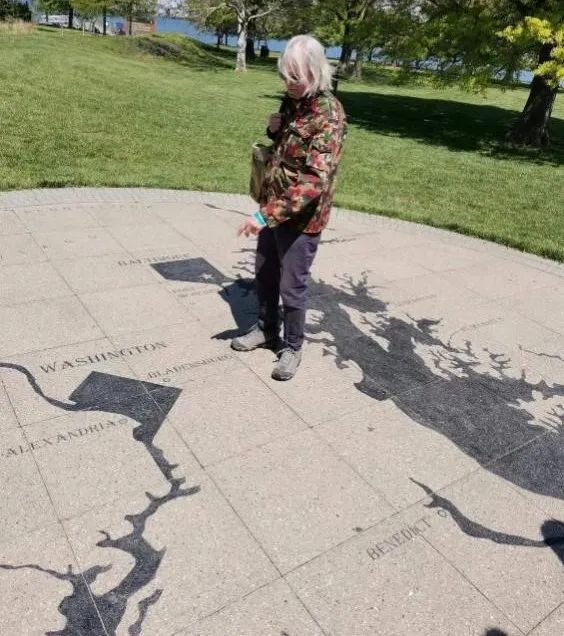离开麦克亨利堡之际,克劳德教授在门口广场地图处强调了麦克亨利堡的重要战略位置和承载的民族精神。