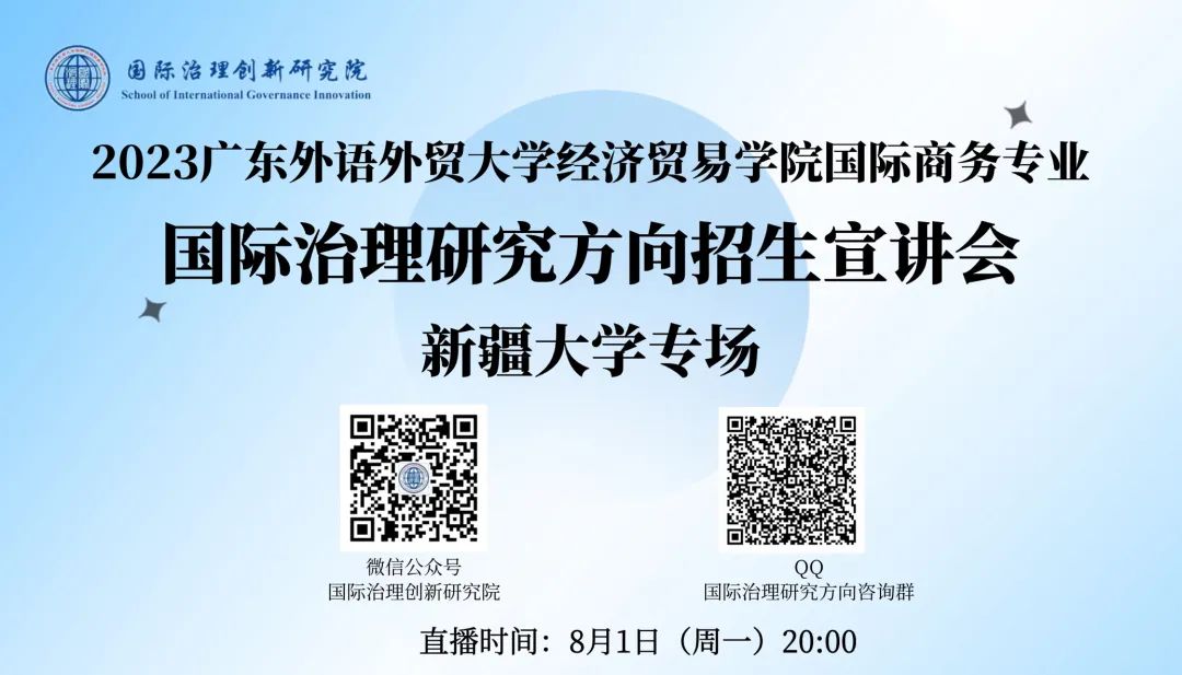 2022年8月1日晚,国际治理创新研究院顺利举办2023级经济贸易学院国际商务专业国际治理方向新疆大学专场线上招生宣讲会。