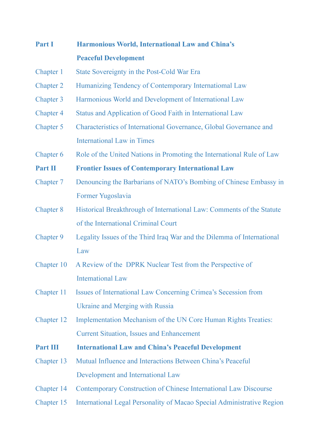 该专著为弘扬中华学术文化、增强中国特色话语在国际法学论坛上的影响力,做出了最新贡献,让世界得以聆听中国国际法学者真知灼见的强音。