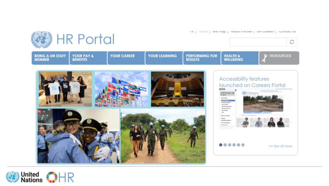 运营网站HR Portal是谢文龙的日常工作之一,该网站涵盖了员工薪酬福利、健康福利、学习项目等内容。除网站运营外,谢文龙还负责联合国系统人事管理、数据统计、通讯传播及协助举办国际活动等工作。