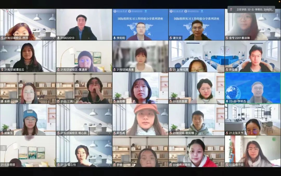 之后,李阳阳向大家分享了国际组织实习申请投递时应当注意的几个问题。他强调,简历筛选不仅是对应聘者专业技能的评估,也是对其英文写作能力的考察。在撰写简历时,同学们应当做到突出重点、实事求是和逻辑清晰。此外,李阳阳还分享了自己在实习中积累的几点经验,一是在开始实习前主动向主管询问部门工作材料以熟悉工作内容;二是养成定时向主管汇报工作进度的习惯;三是利用Workshop等途径了解相关领域权威专家和前沿研究成果;四是学习利用联合国的各种培训系统提升自身工作能力