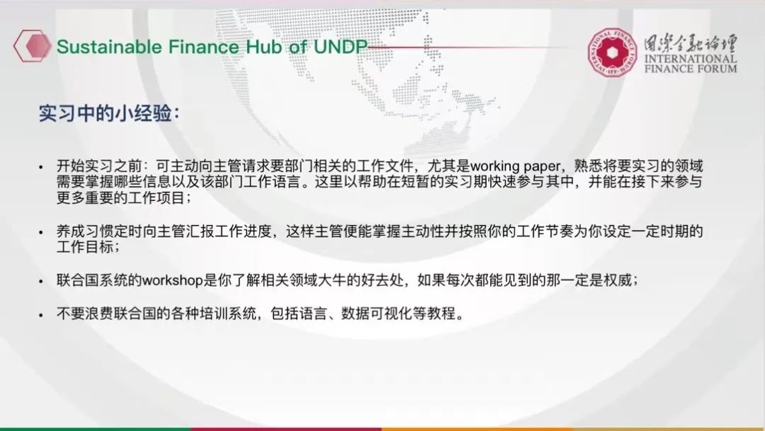 国际金融论坛(IFF)是非营利、非官方独立的金融领域高级别常设多边合作机构。李阳阳目前就职于该机构下属的全球绿色增长中心(GGGC)。全球绿色增长中心致力于推进碳中和、可持续发展和绿色增长,以期促进中国和世界的绿色发展。