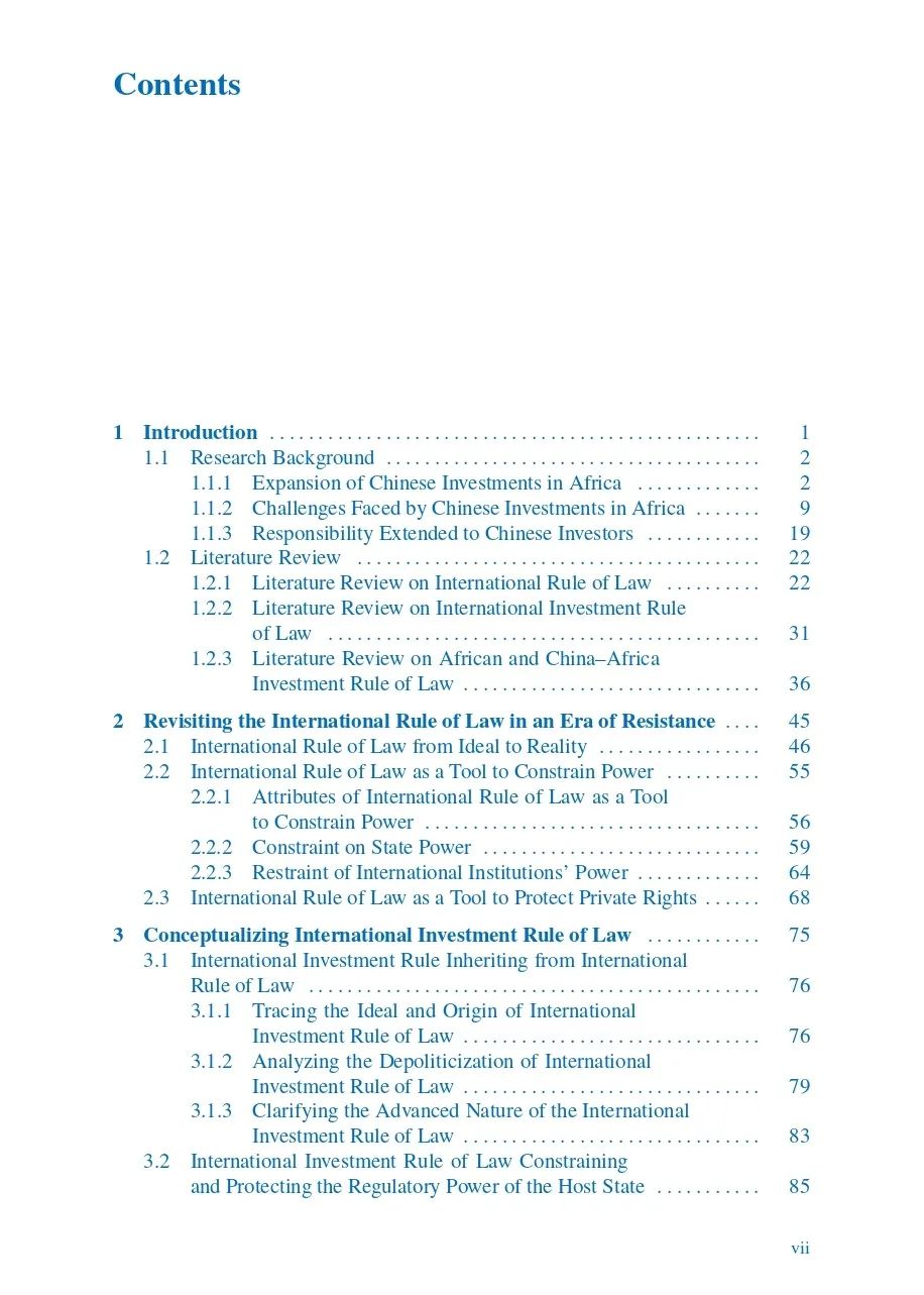 《国际投资法治理念下中国在非洲投资的法律保护与可持续性》(Legal Protection and Sustainability of Chinese Investments in Africa under the Concept of International Investment Rule of Law)专著的目的是在国际投资法治的理念和框架下探索中国在非洲投资的保护和可持续性问题,以促进中国和非洲的可持续发展。