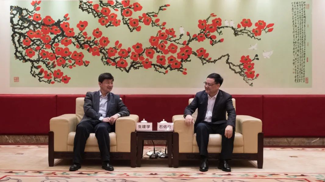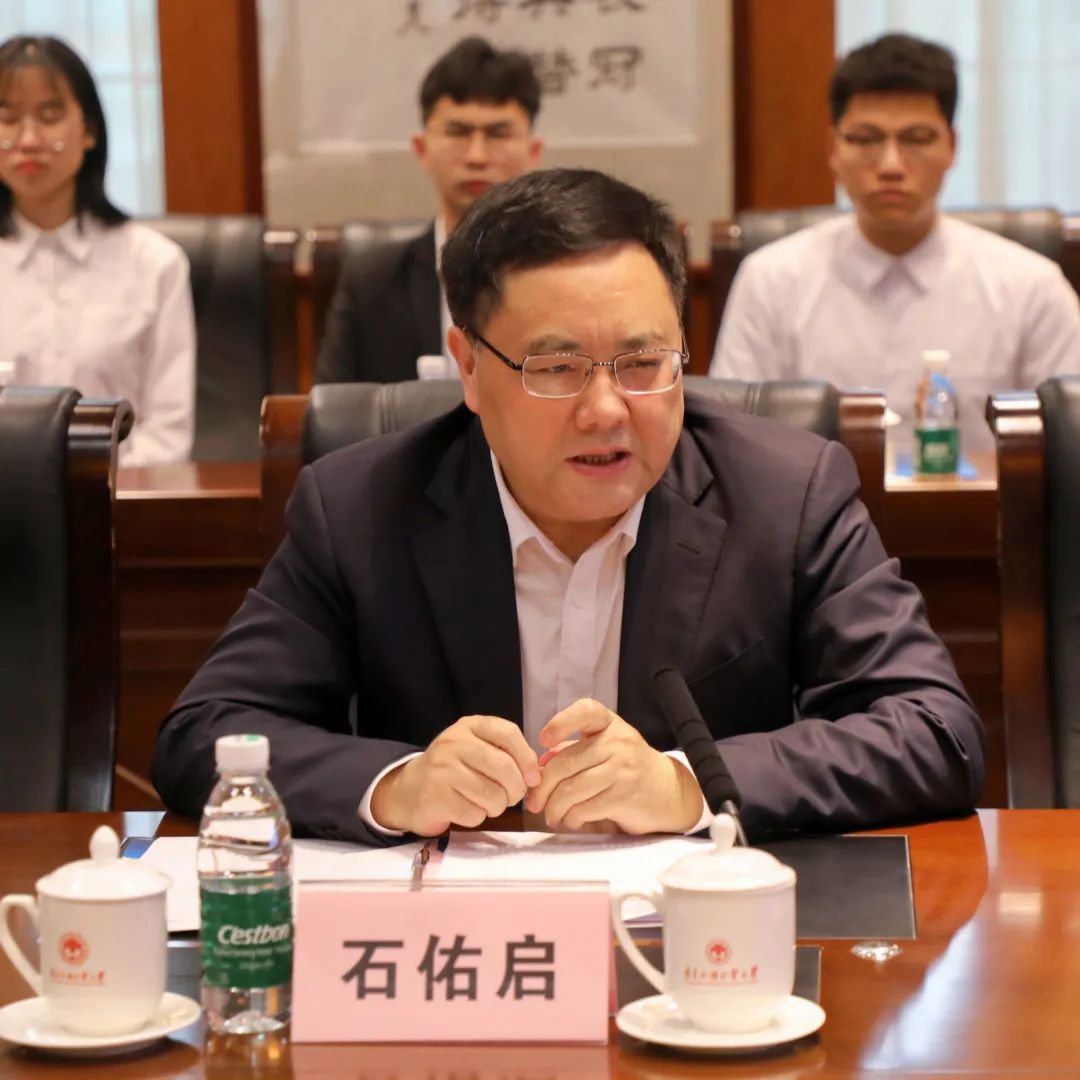 校党委书记、校长石佑启亲切交谈