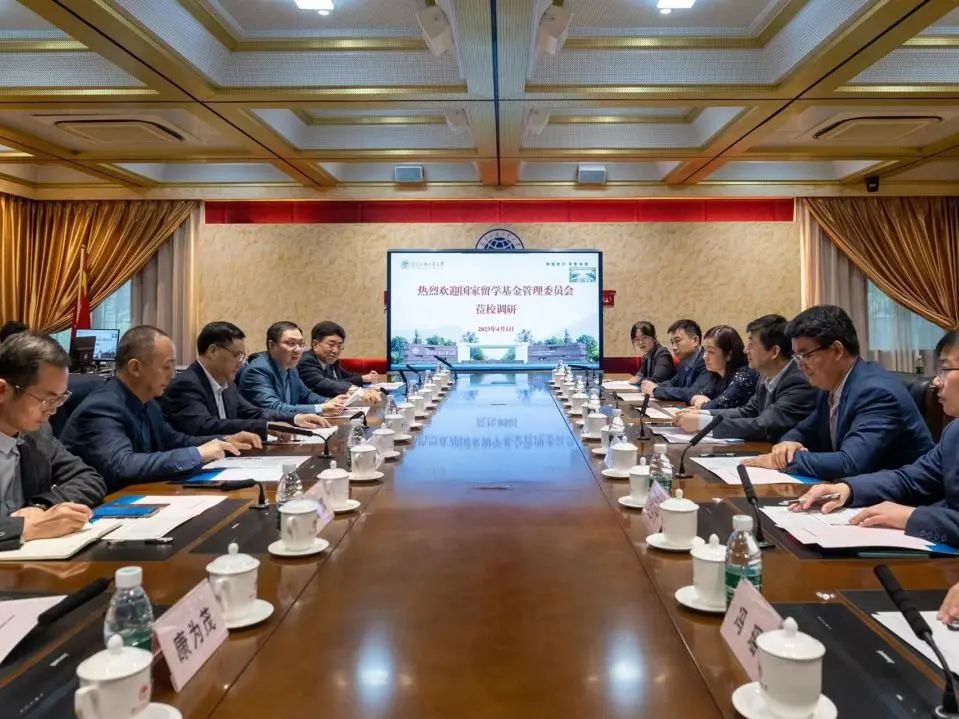 2023年4月1日下午,国家留学基金管理委员会(以下简称国家留基委)党委书记、秘书长生建学,副秘书长田露露,教育部财务司外事财务处一级调研员王勇,出国留学选培部主任杨祥义,出国留学选培部杨立国,办公室冯瑶以及广东省教育厅交流合作处副处长周国平一行莅临广东外语外贸大学(以下简称广外),就我校高层次国际化专业人才培养等工作开展调研,并与我校国际治理创新硕士研究生项目的部分研究生代表进行座谈交流。广东外语外贸大学党委书记、校长石佑启出席会议并致欢迎辞,校党委常委、副校长刘海春主持座谈会。