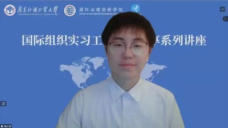2023年5月20日上午,由国际治理创新学院成功举办“国际组织实习工作经验分享系列讲座”第十八讲。2018级学子夏正源以“用一生追求意义”为题,介绍了其在联合国环境规划署生物多样性公约秘书处与联合国拉丁美洲和加勒比经济委员会华盛顿办公室的实习情况。国际治理创新学院唐妍彦博士主持讲座,国际治理创新学院全体学生参加讲座。