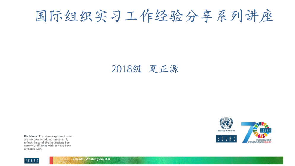 作为一名具有经济背景的学生,夏正源表示,在联合国环境规划署生物多样性公约秘书处的实习并没有完全发挥出他的专业优势,再加上在联合国实习期间他认识了许多拉美地区的朋友,对拉美国家研究产生了极大的兴趣,因此他在联合国拉丁美洲和加勒比经济委员会(以下简称拉加经委会)华盛顿办公室开启了第二段实习。拉加经委会是隶属于联合国经济及社会理事会系统下专门研究拉美和加勒比国家金融情况的委员会,其总部设立在智利圣地亚哥。夏正源介绍道,华盛顿办公室是拉加经委会下一个小而精的宏观经济研究办公室,主要负责与美国政府以及在华盛顿的国际组织进行交流合作、定期对美国经济和全球经济市场进行评估和分析、协助拉美各国完成投资和贸易决策、监测国际金融市场的稳定以及维护和更新拉美地区的债券发行情况等工作。拉加经委会每年都会定期发布多份报告。夏正源在拉加经委会实习的主要工作则包括数据的收集、整理、分析以及办公室数据库的维护,办公室的各项课题研究与课题报告的撰写以及美墨加自贸协定争端谈判的监测等。