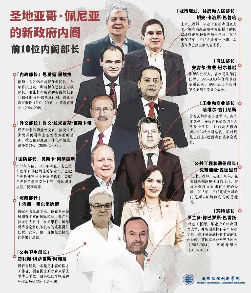 新政府的内阁成员秉承佩尼亚总统的目标愿景和政治主张,日益成为建设巴拉圭的核心力量,携手引领巴拉圭人民走向更为光明的未来。他们将着力解决教育、外交、卫生、基础设施、环境、医疗、文教等各个领域的重要议题,致力于改善广大巴拉圭民众的民生福祉,致力于建设更加繁荣、富有活力和国际影响力的巴拉圭。百年未有之大变局不断演进,这一强大的内阁团队将全力以赴应对时代挑战,敢作敢为,务实担当,为巴拉圭经济腾飞的筑牢上层建筑之基。