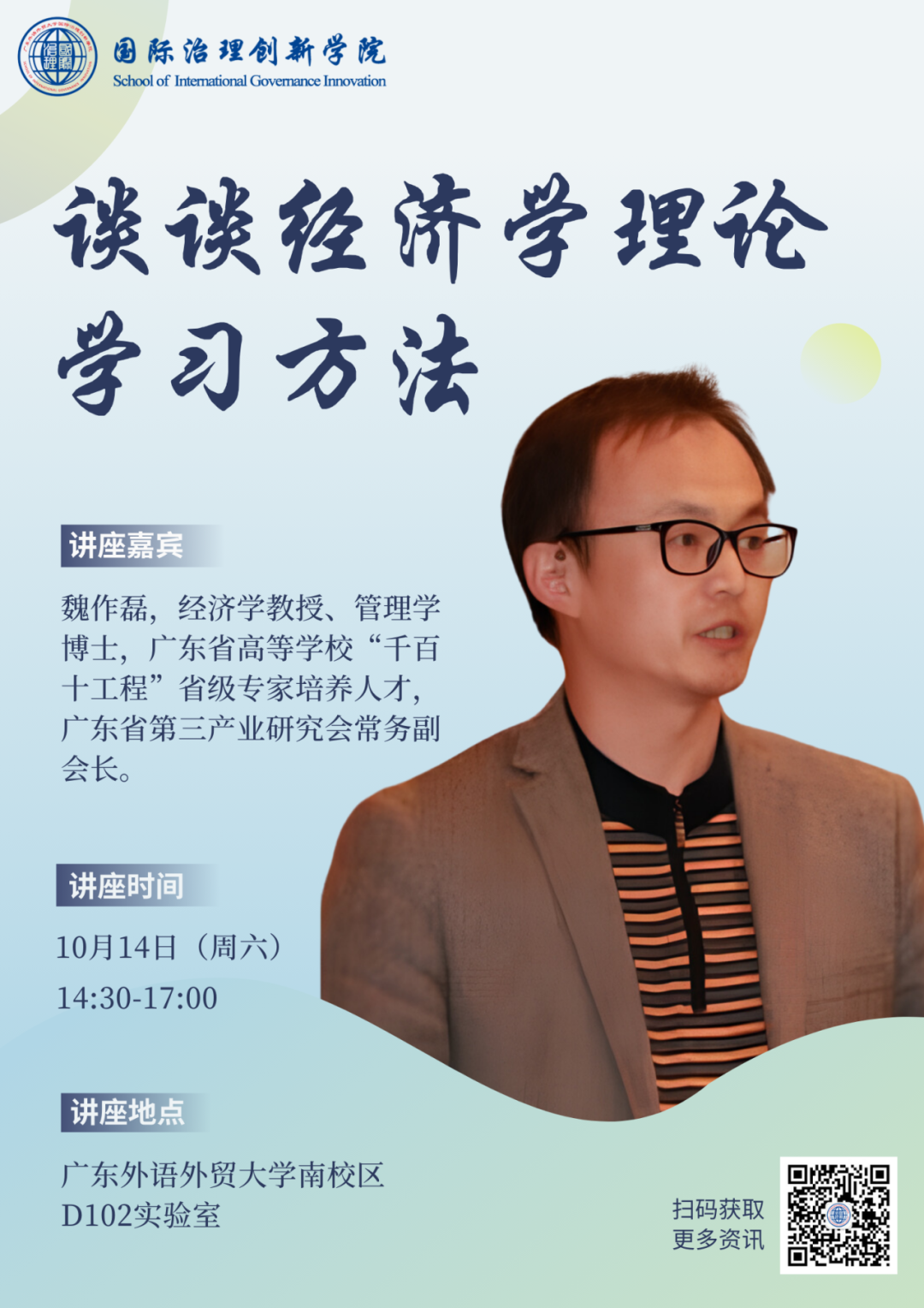 经济学教授、管理学博士,广东省高等学校“千百十工程”省级专家培养人才,广东省第三产业研究会常务副会长。长期专注于服务业发展与产业升级研究,在《统计研究》《财贸经济》《数量经济与技术经济研究》《经济学家》《国际贸易问题》《改革》《南方日报》《南方》等杂志报刊发表服务业研究论文80多篇,多篇论文被《新华文摘》《中国社会科学文摘》《人大复印资料》《学习强国》等转载并产生广泛影响,两次入选中国哲学社会科学最有影响力学者排行榜(经济学)。