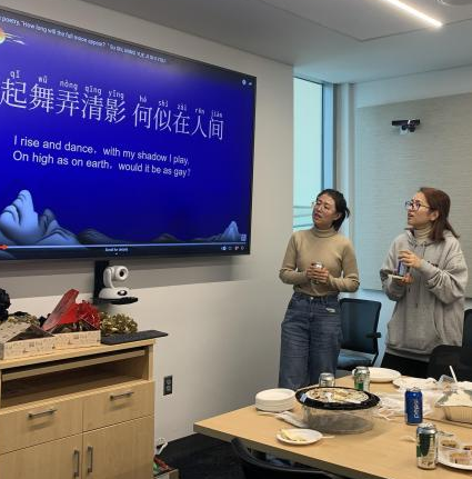 陶嘉懿:又是一年中秋佳节,今年的中秋和往年不同,没有与家人一起吃茶赏月,而是和公共政策学院的老师与同学们欢庆节日。虽然我们的文化背景各不相同,但中秋的氛围与情感是共通的。我们一起品尝着月饼,聆听着音乐,这一刻,我感受到了家一般的温暖。