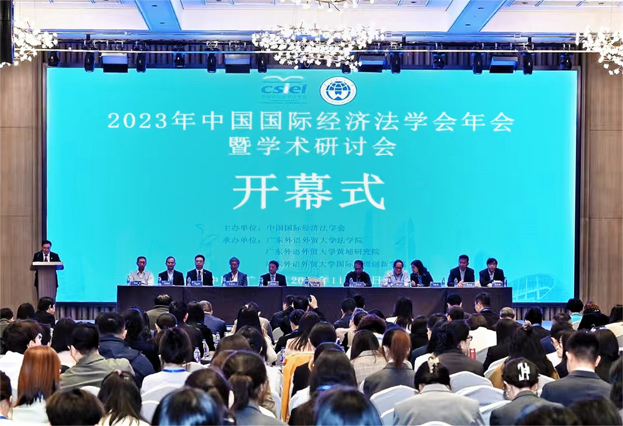 2023年11月18至19日,2023年中国国际经济法学会年会暨学术研讨会在广州成功举办。本次年会由中国国际经济法学会主办,广东外语外贸大学法学院、黄埔研究院和国际治理创新学院联合承办,主题为“‘一带一路’倡议10周年与中国特色国际经济法学的创新发展”,探讨如何丰富和发展中国特色国际经济法学的理论与实践,为“一带一路”国际合作提供法制保障,为高素质法治人才培养奠定基础。来自外交部、商务部,清华、人大、复旦、南京、武汉、浙江、厦门、中山、广外等百余所高校、司法、律所和研究咨询等机构的400多名专家学者齐聚一堂,共襄学术盛会。