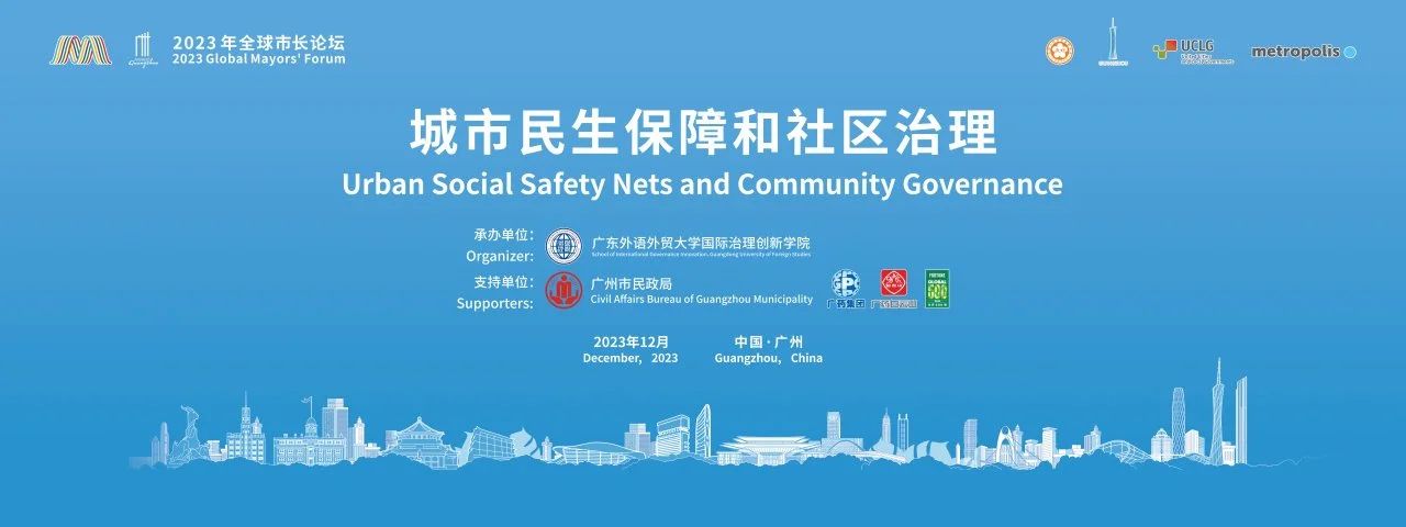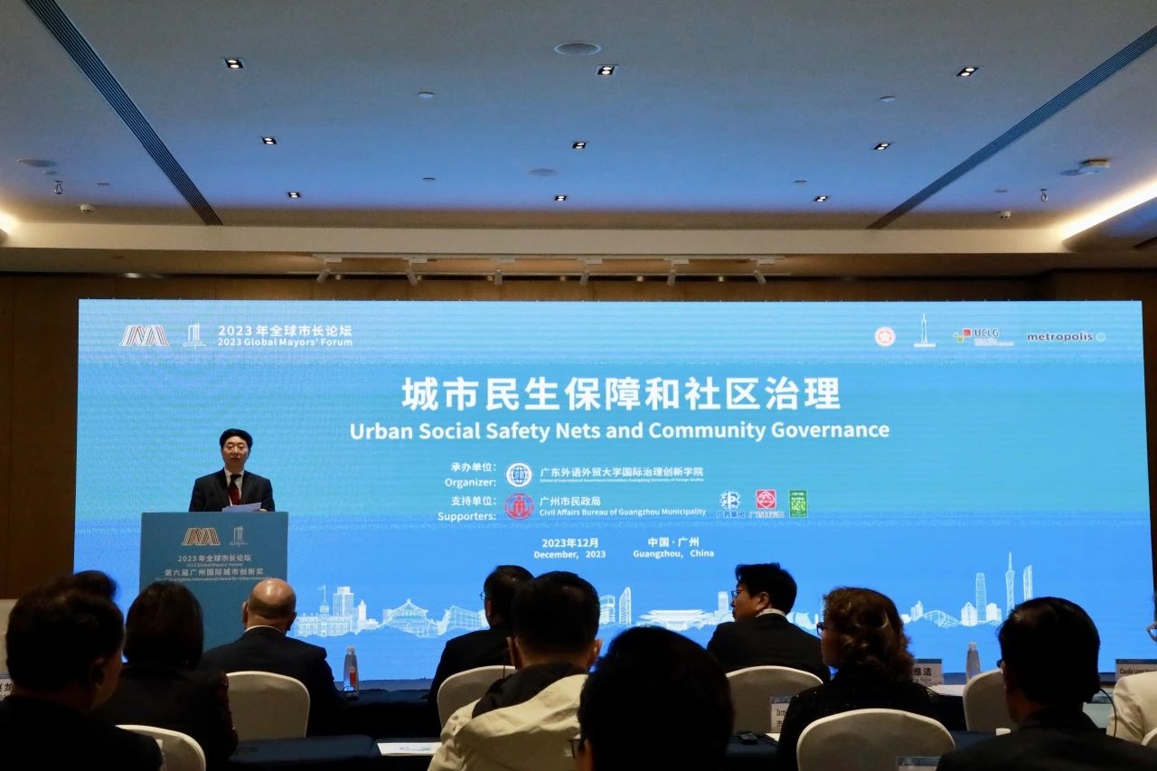 2023年12月8日,由中国人民对外友好协会、广州市人民政府、世界城地组织、世界大都市协会共同主办的2023年全球市长论坛于广州越秀国际会议中心开幕。12月9日上午,由广东外语外贸大学国际治理创新学院承办、广州市民政局支持的“城市民生保障和社区治理”分论坛顺利举办。