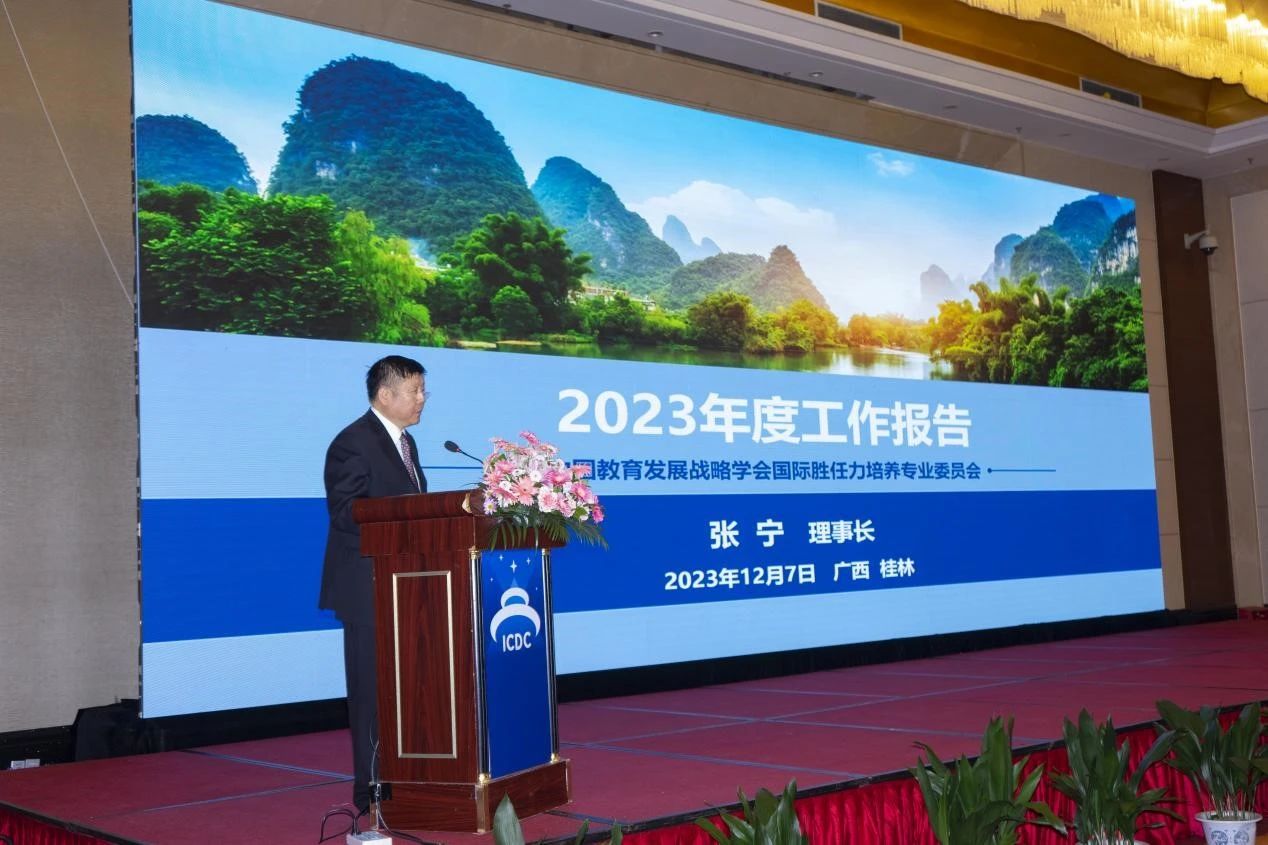 开幕式分为两个阶段,第一个阶段由三位领导嘉宾致辞,分别是中国教育发展战略学会殷长春副会长,国家留学基金委出国选培部杨祥义主任,以及桂林理工大学王敦球校长。第二阶段是国际胜任力培养专业委员会张宁理事长报告2023年专委会工作成就。