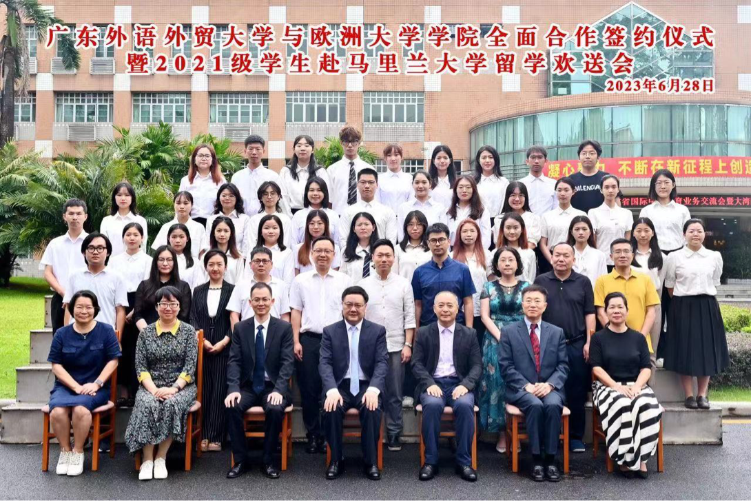 2023年6月28日,广东外语外贸大学与欧洲大学学院签署《广东外语外贸大学与欧洲大学学院全面合作框架协议》,标志着两校合作进入了一个全新的阶段。