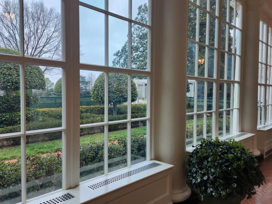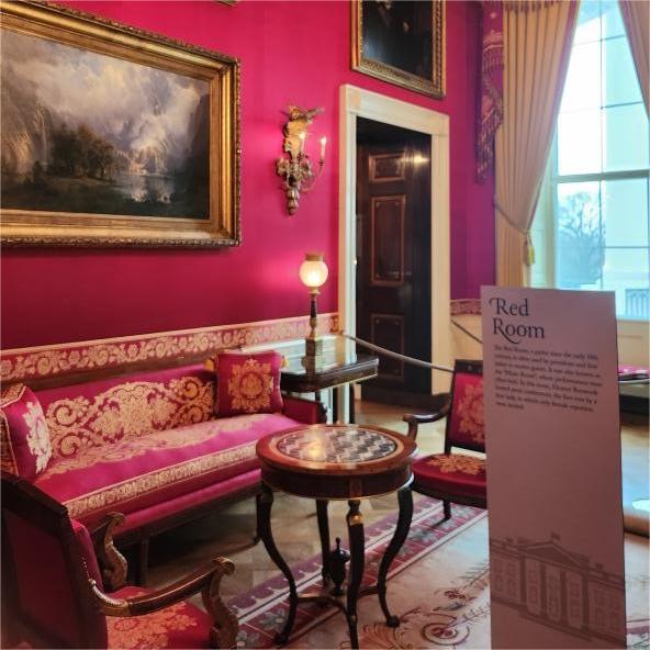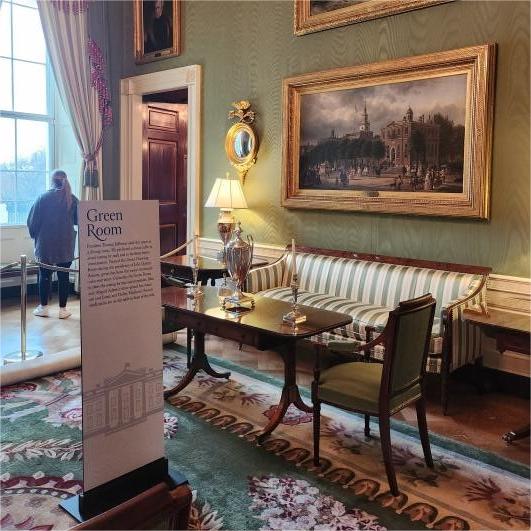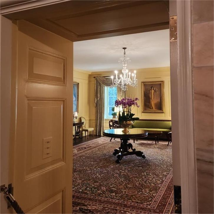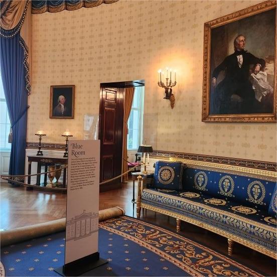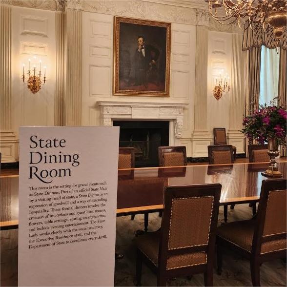 白宫至今已有两百多年的历史,在经历了战火损毁和一系列重建、扩建、和整修后,目前白宫主体建筑大致可分为东翼(The East Wing)、行政官邸(Executive Residence)和西翼(The West Wing)三大组合体。本次国际治理创新学院学子参观了白宫的东翼和行政官邸的地面层(The Ground Floor)和元首层(The State Floor)。