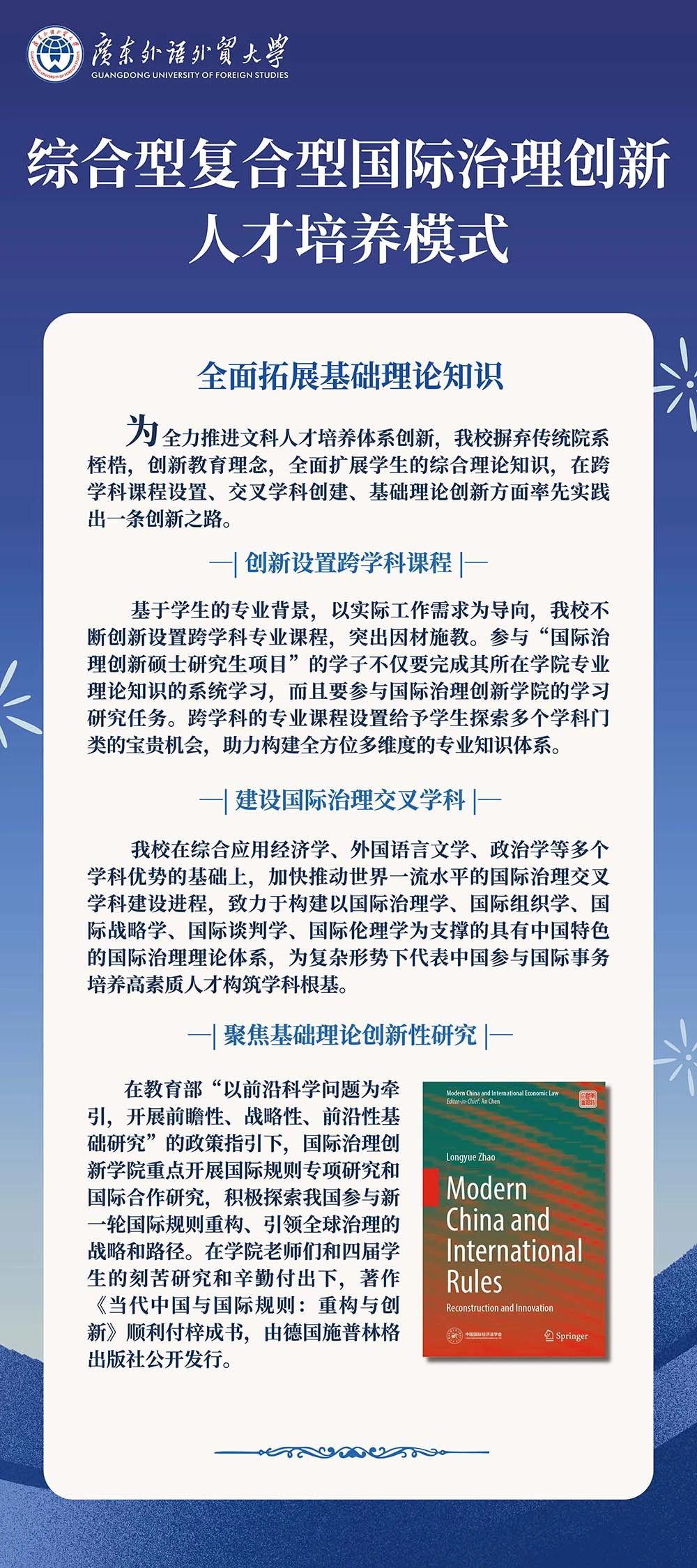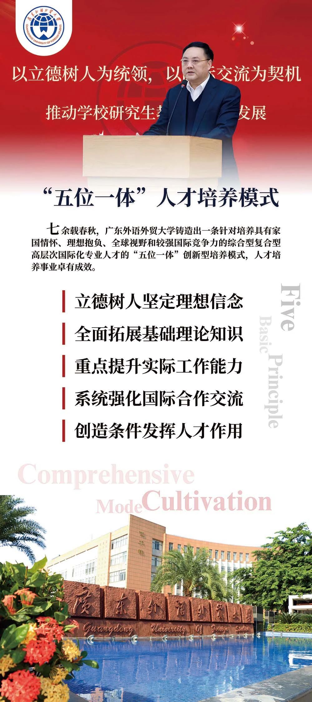 该专题展由广东外语外贸大学学生工作部、研究生院、国际交流合作部、图书馆(档案馆)与国际治理创新学院联合主办,为扩大受众面和持续性影响力,在线下展出后,由档案馆长期在校史馆的“专题展览”版块线上展出。据悉,档案馆正持续打造以校史馆为核心的“1+N”广外文化传承集成,通过“概览+专题”有机融合、“线上+线下”共同发力的多维立体展览方式,助力大学招生宣传,讲好广外故事。