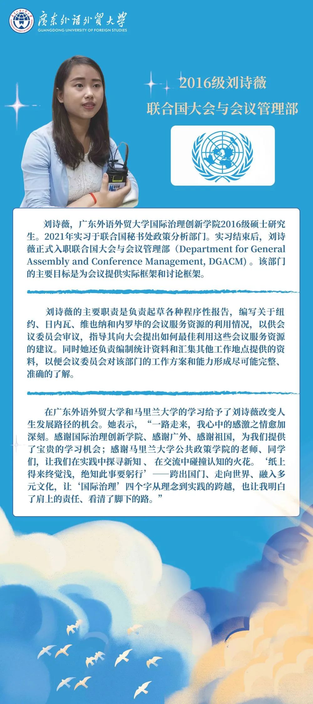 为展示学校在国际组织、国际治理和涉外法治人才培养方面的丰硕成果,助力招生宣传,近日,“国际组织和国际治理人才风采展览”在校史馆线上展出。该专题展此前已分别在白云山校区图书馆、大学城校区图书馆相继展出,反响热烈。