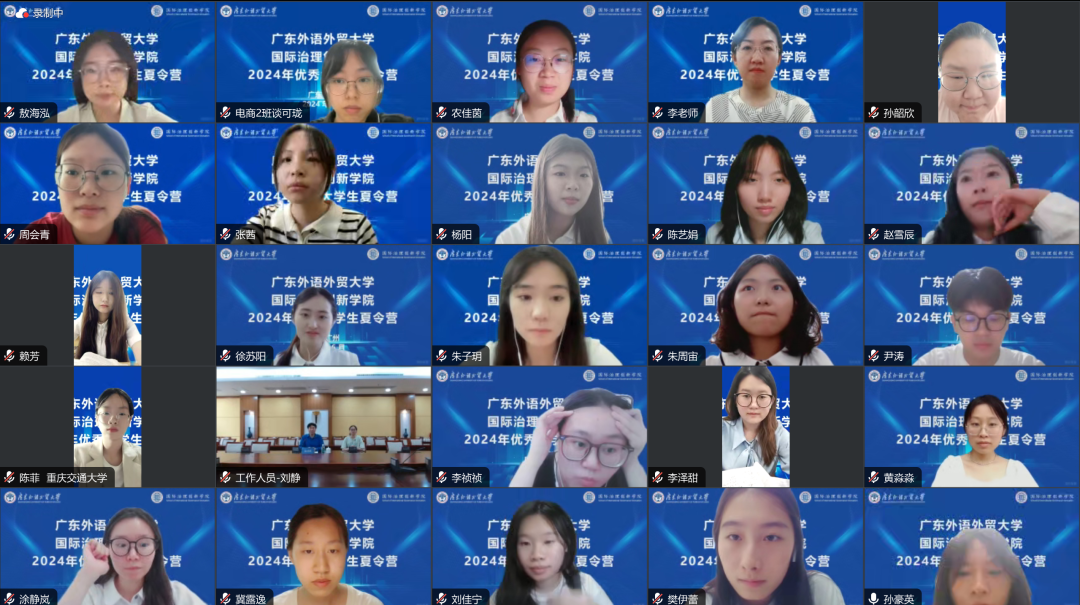 2024年6月19日至21日,广东外语外贸大学国际治理创新学院2024年优秀大学生暑期夏令营如期举行,来自国内多所重点高校的三十位优秀大学生通过审核选拔成功入围参营。本次夏令营通过线上举办,营员们通过参加国际治理前沿讲座、国际组织师兄师姐分享讲座、营员展示和面试考核等环节,度过了丰富充实的学习之旅。