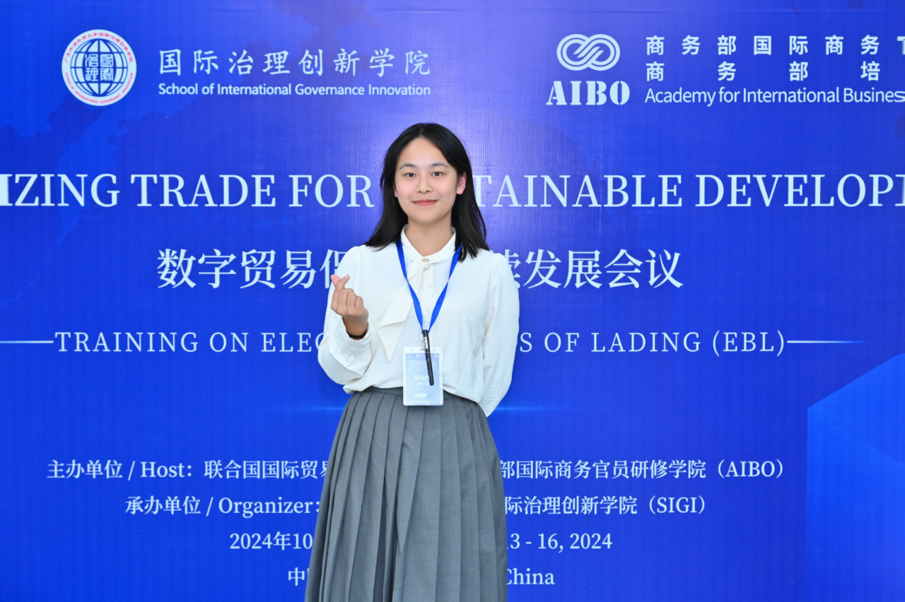 曹心悦在2024年数字贸易促进可持续发展会议暨电子提单(EBLs)培训大会