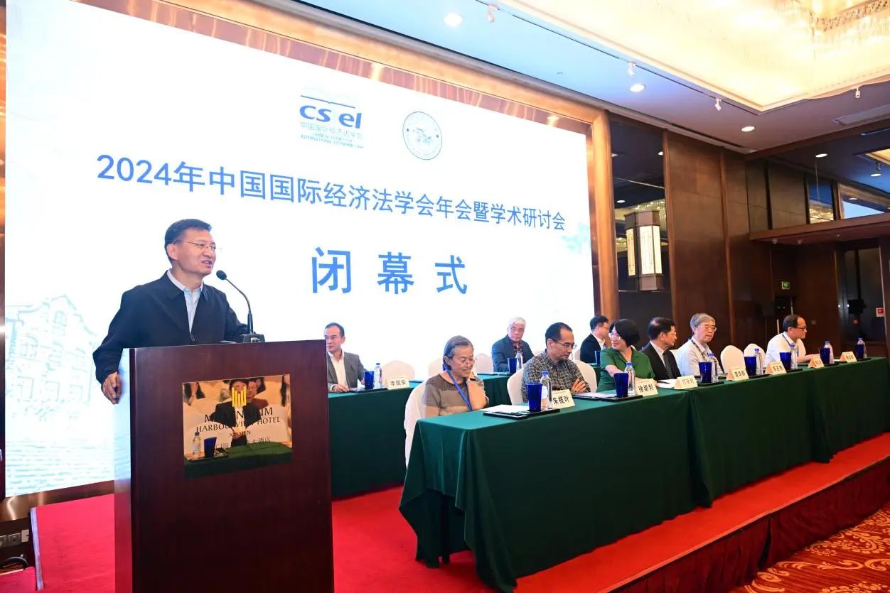 2024年学会年会暨学术研讨会闭幕式由中国国际经济法学会副会长、中国人民大学韩立余教授主持,中国国际经济法学会副会长、厦门大学徐崇利教授作大会总结。