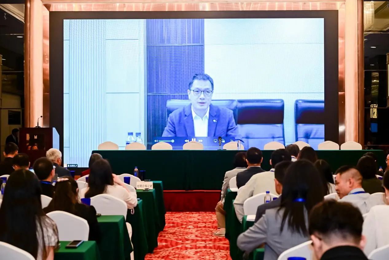 开幕式之后,大会进入专题报告阶段,由中国国际经济法学会副会长、清华大学车丕照教授主持,商务部条约法律司李明副司长以视频形式作国际经济法专题报告。