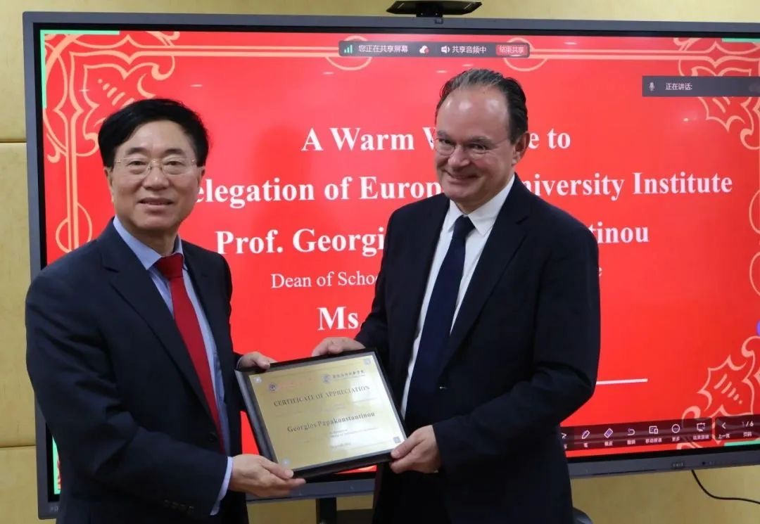 赵龙跃教授与欧洲大学学院乔治教授合影
