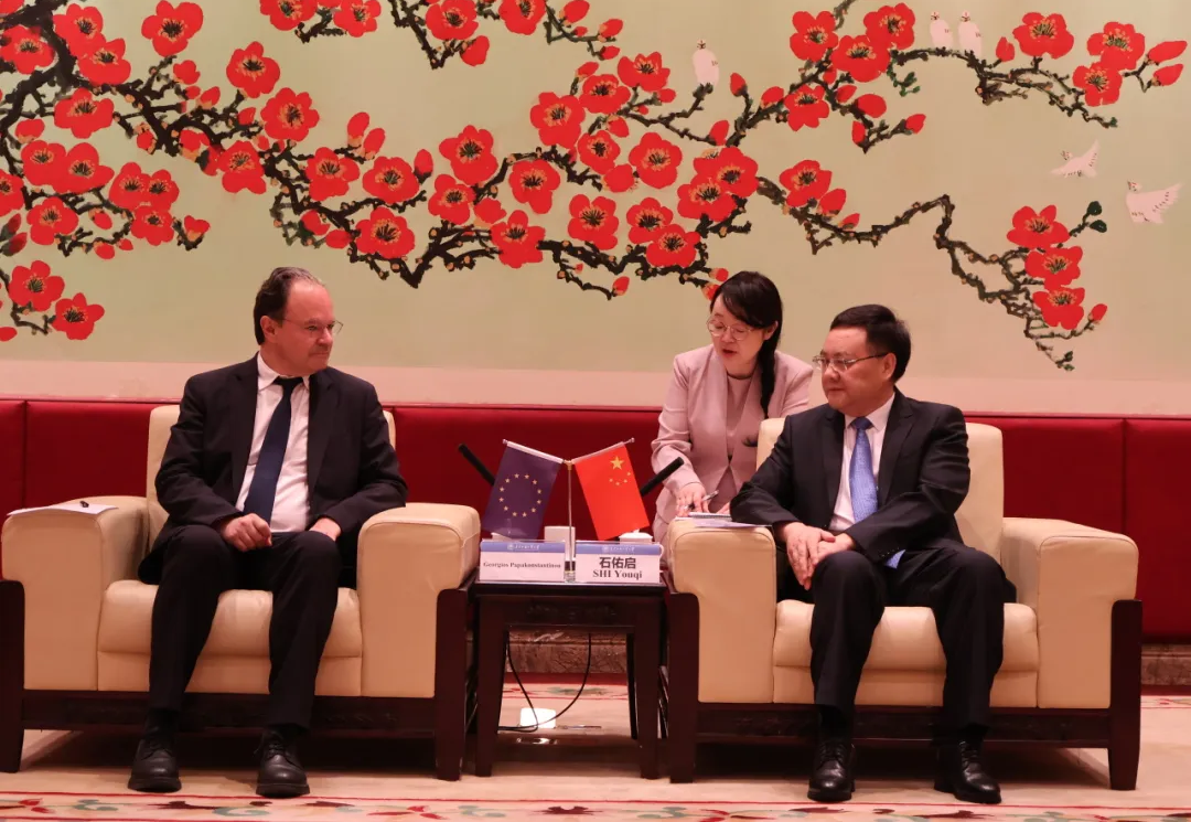 乔治教授与我校党委书记石佑启交谈