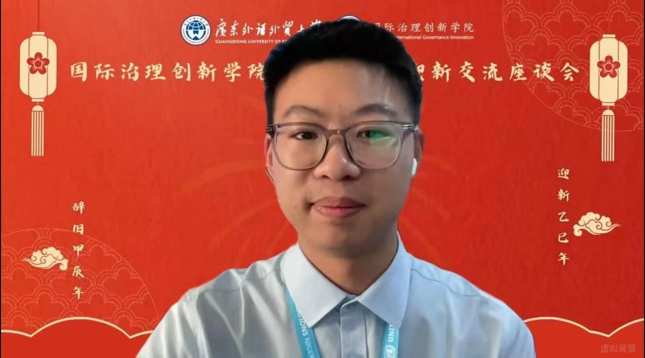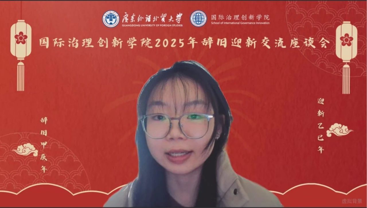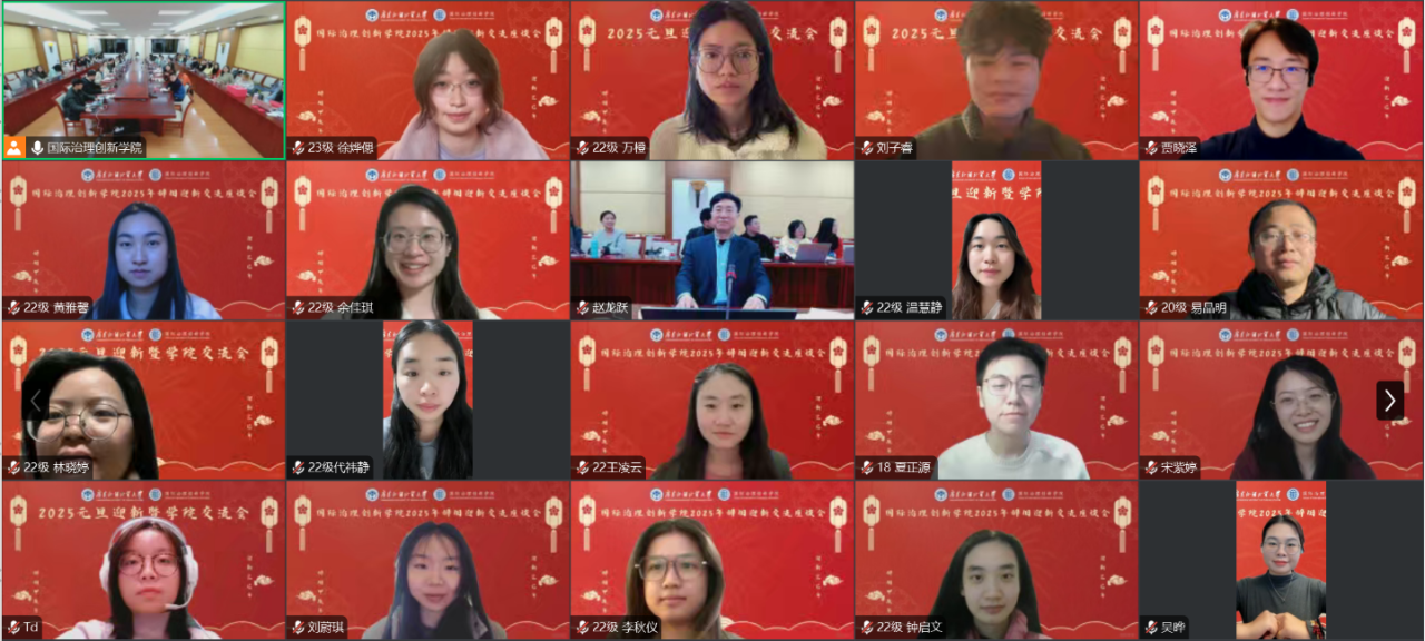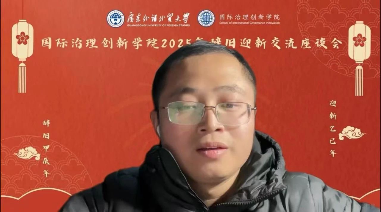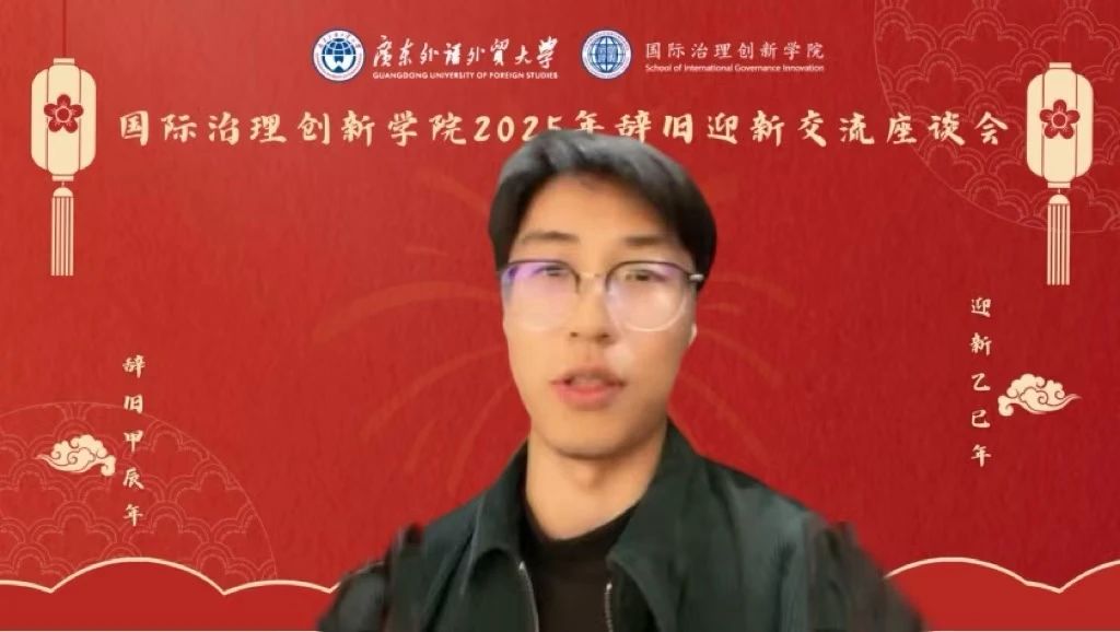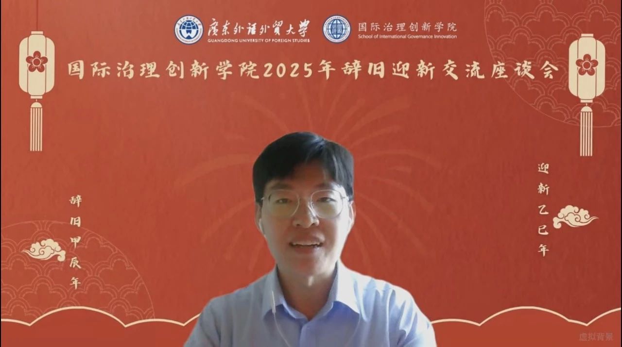 2024年12月31日,时值岁末年初之际,国际治理创新学院在广东外语外贸大学大学城校区校办公楼103举行2025年辞旧迎新交流座谈会。本次会议由国际治理创新学院院长赵龙跃教授主持,国际治理创新学院全体教师、2018级至2024级七届学生以线上和线下方式共同参与此次交流会。学院师生齐聚一堂,共同回顾过去一年的奋斗历程,展望新一年的发展蓝图。
