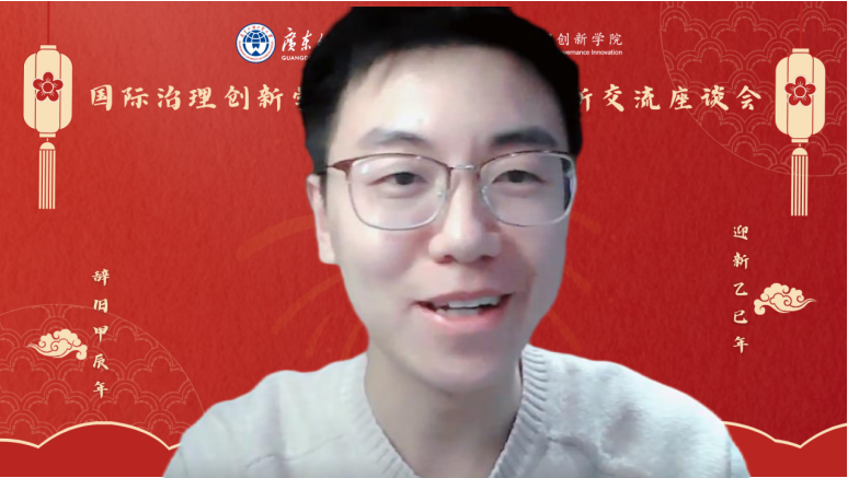 会议伊始,赵龙跃教授代表全体师生对关心支持国际治理创新学院工作的国家部委有关部门领导、广东外语外贸大学学校领导、院部领导和老师、以及全国各地兄弟院校同仁送去最诚挚的感谢,并向远在北美洲、欧洲、非洲、拉丁美洲、大洋洲等世界各地学习与工作的我院学子们送去了最真挚的新年祝福。