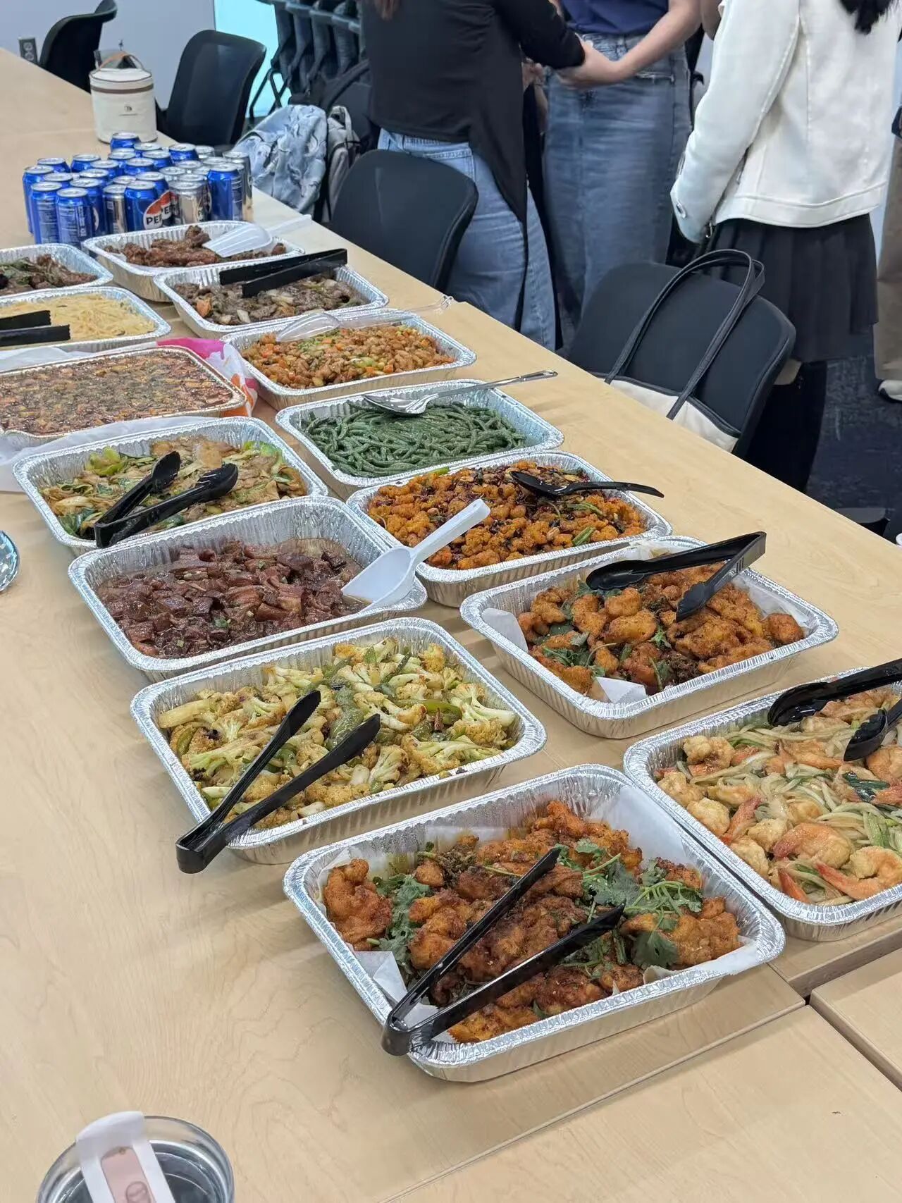 当天上午,学子们在完成由Michael Horlick助教主持的“课后作业实验室”辅导之后,共同前往聚餐地点Thurgood Marshall Hall 1201室。公共政策学院的老师们在学院为同学们准备了丰盛的中秋节午宴:辣子鸡丁、麻婆豆腐、酸辣土豆丝、香辣牛肉等一道道中式传统佳肴一应俱全。十月的马里兰,秋意初起,校园的林木渐染金黄。在这样一个充满收获与思念的季节里,同学们齐聚一堂,共享午宴与月饼,在异国他乡也感受到了家的温度与节日的喜悦。