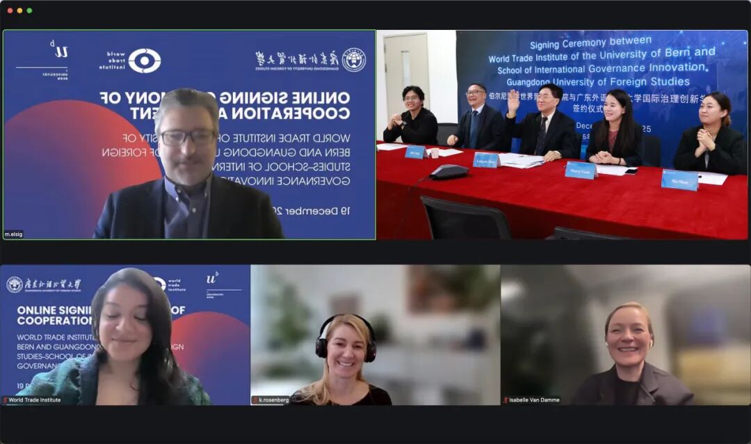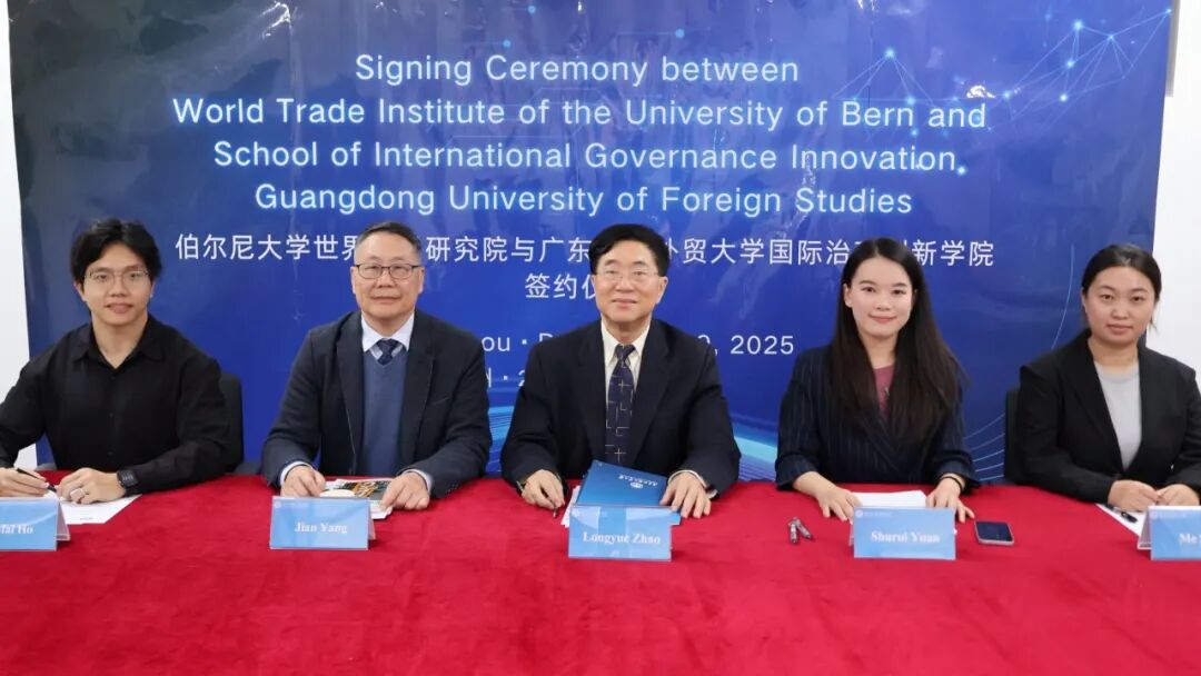 2025年12月19日,国际治理创新学院与瑞士伯尔尼大学世界贸易研究院(WTI)正式签署全面合作框架协议。国际治理创新学院院长赵龙跃教授、世界贸易研究院院长曼弗雷德·埃尔西格教授等出席了本次签约仪式。