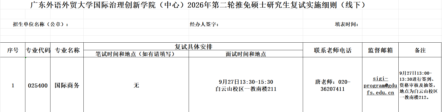 广东外语外贸大学国际治理创新学院2026年推免硕士研究生复试实施细则(线下)