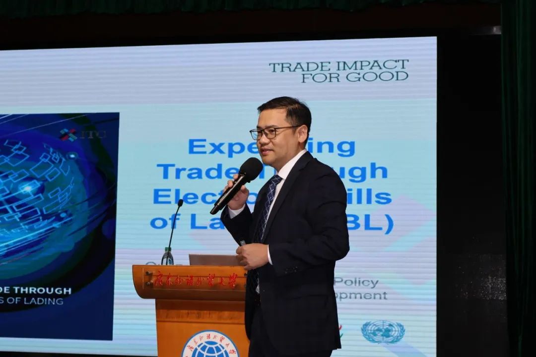 First, Zhao Quan, Senior Programme Officer of the Division for Market Development of ITC, presented a lecture on “Expediting Trade through EBLs-ITC Technical Paper”. Starting from the origin, use, and stakeholders of the bill of lading, he centered on the rise and operation mode of eBLs. He also pointed out its important role in saving time, cutting costs, and driving a green economy. However, as an emerging field, the development of eBLs also encounters numerous challenges, including the absence of a perfect certification system and a standardized process, and information security issues. Based on the above analysis, he proposed a series of suggestions for enhancing the use of eBLs.