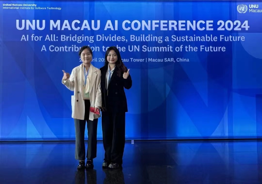 From April 24th to 25th, 2024, the United Nations University Macau AI Conference 2024(UNU Macau AI Conference 2024) was successfully held in Macau. The conference revolved around the theme of “AI for All: Bridging Divides, Building a Sustainable Future”and officially launched “The United Nations University Global Artificial Intelligence Network” (UNU Global AI Network). Nearly 500 participants from academia, policymakers, the private sectors, international organizations, and civil society organizations from more than 30 countries participated in this academic event and connected across diverse viewpoints on the Al. School of International Governance Innovation of Guangdong University of Foreign Studies(GDUFS), as one of the founding members of the Network, sent two postgraduate representatives to participate in this forum.