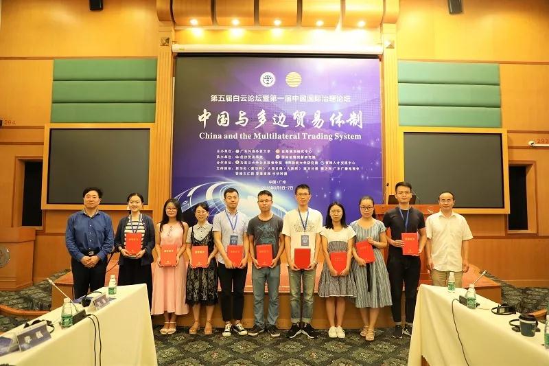 在论坛当天的表彰仪式上,广东外语外贸大学国际治理创新研究院院长赵龙跃教授、广东外语外贸大学经贸学院副院长肖奎喜教授为表现出色的青年学者进行颁奖,奖项包括一等奖1名,二等奖3名,三等奖5名,优秀奖5名。