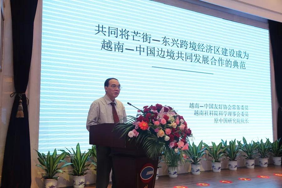 越南《中国研究》杂志社总编辑、越中友好协会常委、越南社科院中国研究所原所长杜进森在主题发言时指出建设跨境经济合作区在理论和深度实践层面都是必要且有意义的,并受到了两国高层领导的关注并达成共识。我们应将芒街—东兴跨境经济区可以建设成为两国边境共同发展合作的典范。